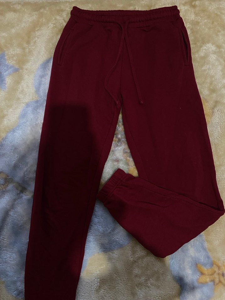 Yumuşak kumaştan bordo, salaş kesim kadın sweatpant, günlük rahat kullanım için zahmetsiz şıklık sunar.