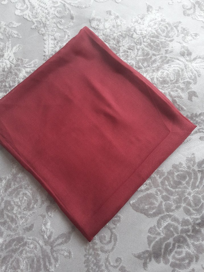 Bordo parlak renkte, saten dokulu, drapeli kadın şalı, sade ve rahat bir stil sunar.