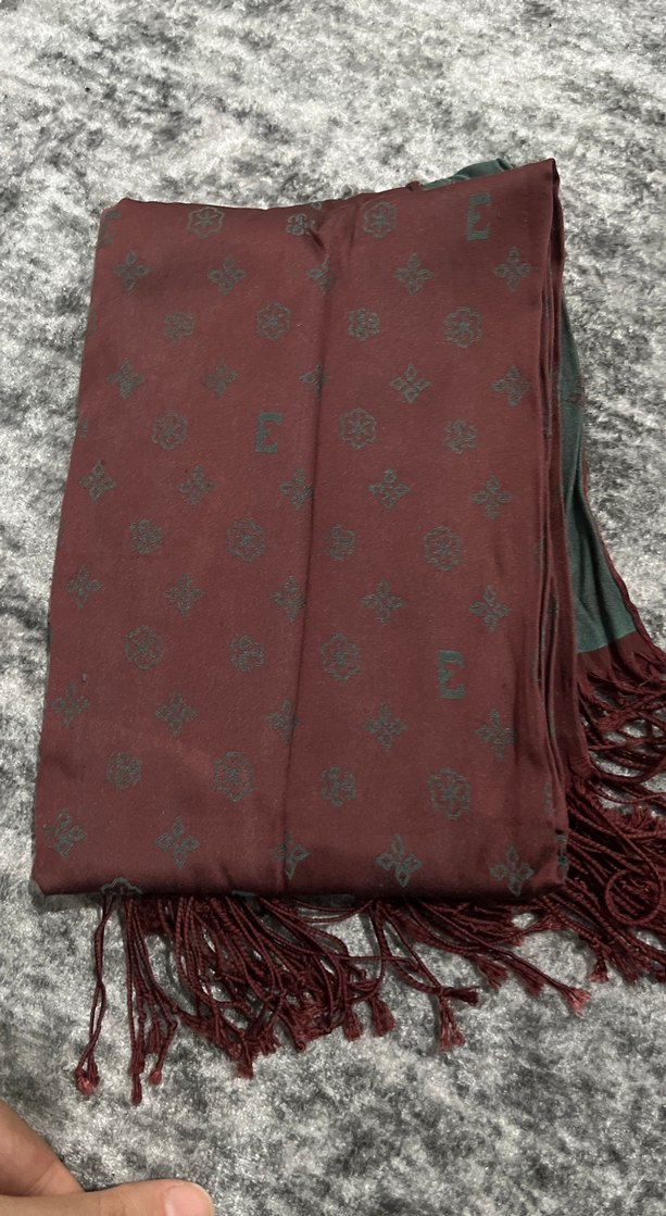 Bordo Kadın Saten Şal Püsküllü çift taraflı