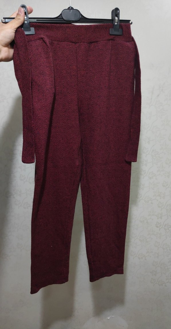 S ve M beden mevcut. Bordo renkli kadın pantolon, bol kesim ve midi boyda, yumuşak sentetik kumaştan üretilmiştir. Tasarımı günlük rahat kullanıma uygundur.
