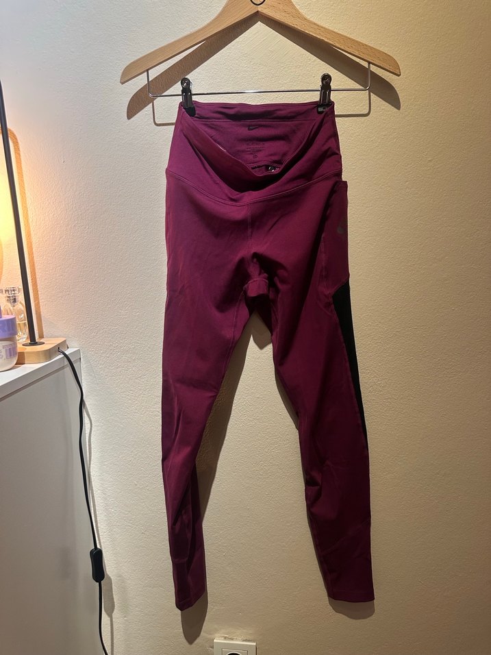 Bordo renkli, normal midi boyda ve velcro detaylı, sentetik kumaştan yapılmış dar kesim kadın spor tayt uzunluk 87 cm