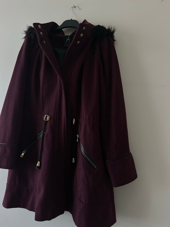Bordo süet kumaştan yapılmış, kapüşonunda peluş detaylar bulunan, notalı yaka ve bol kesime sahip kadın kabanı. Uzun kollu, fermuarlı ceplidir, günlük kullanıma uygundur. YURT DIŞINDAN ALINMIŞTIR. KULLANMADIĞIM İÇİN SATIYORUM. TERTEMİZDİR #kaşekaban #kaban #mont #coat #jacket #mbeden #42beden #winter #winterstyle #kazak