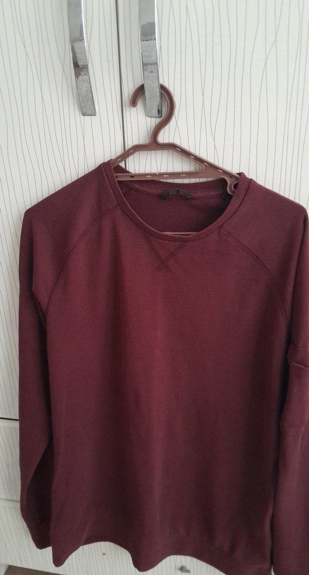 Bordo renkli, yuvarlak yaka ve uzun kollu, bol kesim kadın süet sweatshirt. Minimalist ve normcore tarzıyla günlük kullanıma uygun.