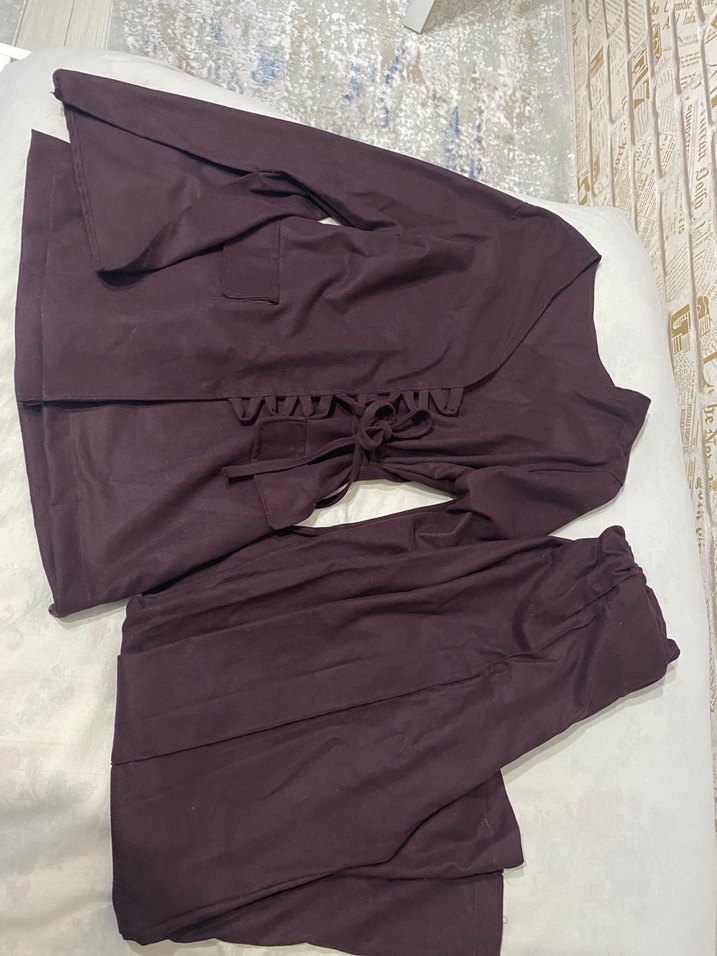 Bordo renkte, süet kumaştan yapılmış, uzun boy ve regular fit kadın takım. Drapeli tasarım, askılı kollar yeni özel dikimdir kullanılmadı hiç marka temsilidirr!!