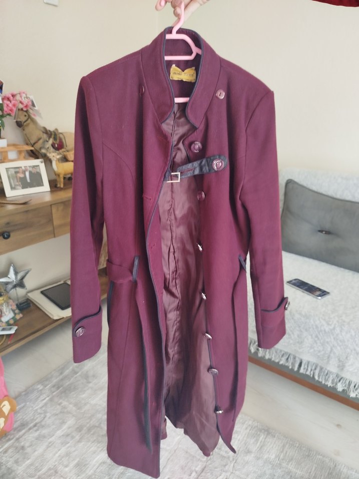 Bordo renkli, uzun süet kaban, düğmeli ön kapama ve yakalı tasarıma sahiptir. Regular fit kesim ve uzun kolludur, günlük kullanıma uygundur.