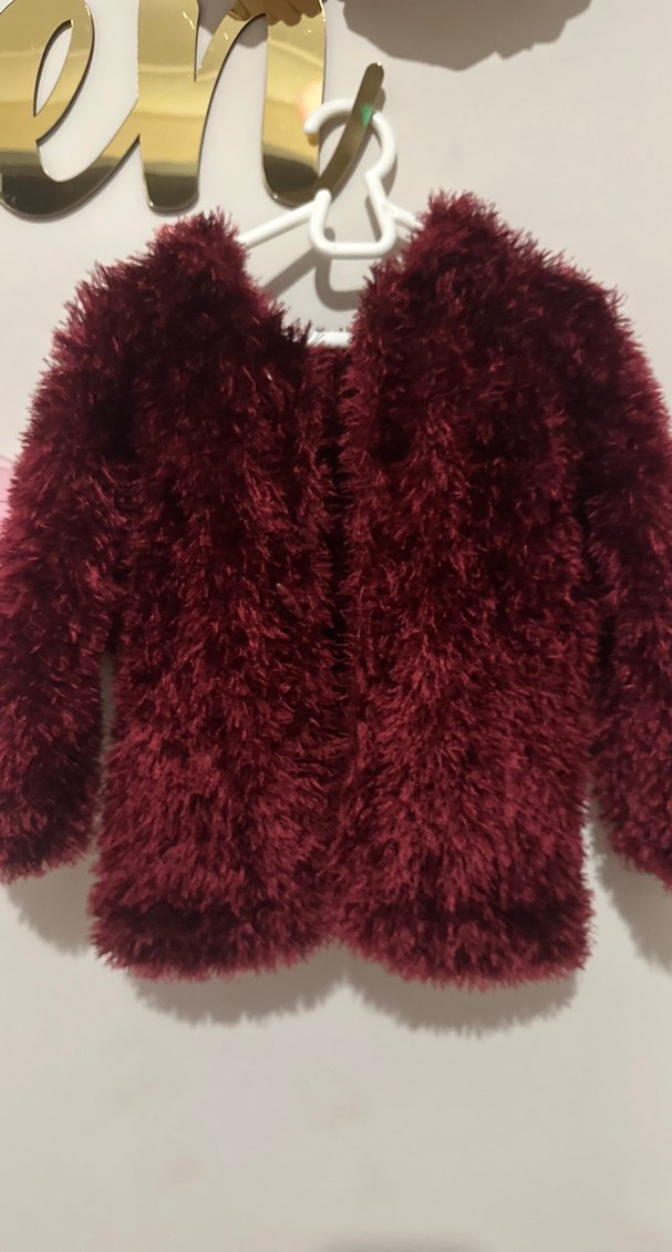 Bordo Kadın Suni Kürk Uzun Kollu Hırka el örgüsü