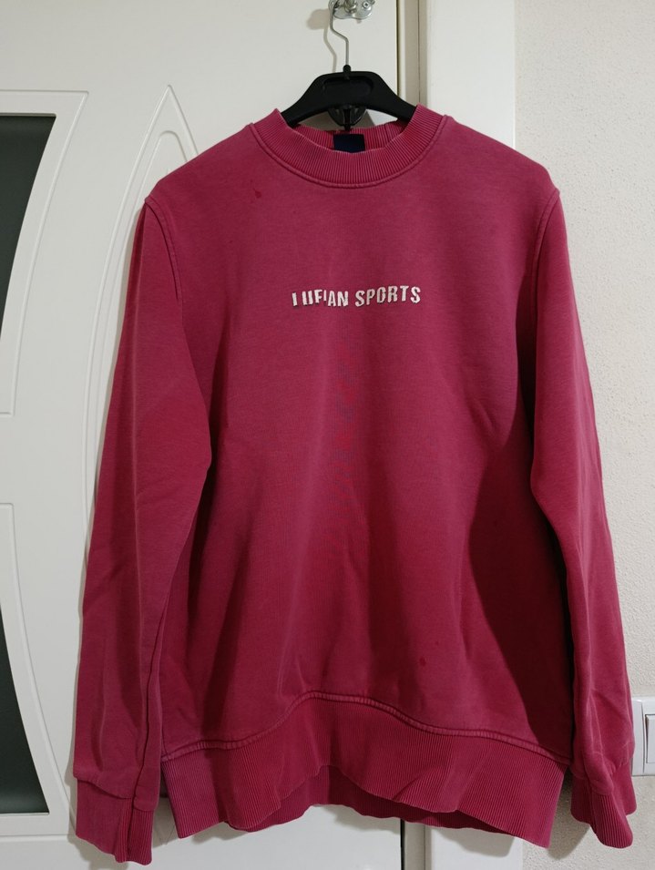 Bordo renkli, uzun kollu ve bisiklet yaka kadın sweatshirt. Üzerinde "IMFIANSPORTS" baskısı bulunan, günlük kullanıma uygun rahat ve şık bir model.
