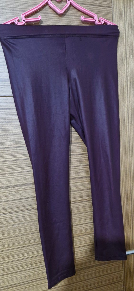 bordo renkli, deri görünümlü vücuda oturan midi tayt, pürüzsüz sentetik kumaştan, rahat ve şık bir günlük kullanım sağlar.