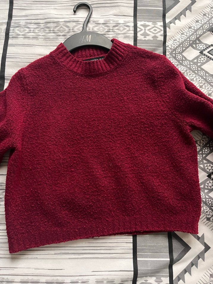 Bordo renkli, yuvarlak yaka ve uzun kollu, bol kesim triko kazak. Rahat ve sade tasarımıyla günlük kullanıma uygundur.