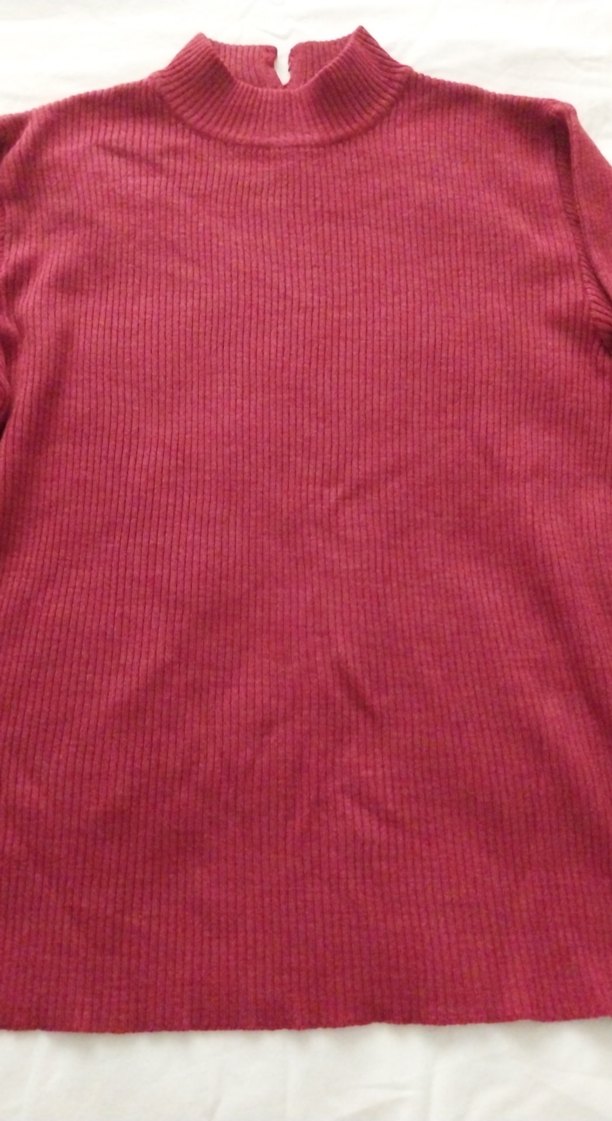 Bordo renkli, dar kesim kadın triko kazak. Yuvarlak yaka ve uzun kolludur. Yün örme kumaştan, günlük kullanıma uygun, rahat ve parlak görünümlüdür.