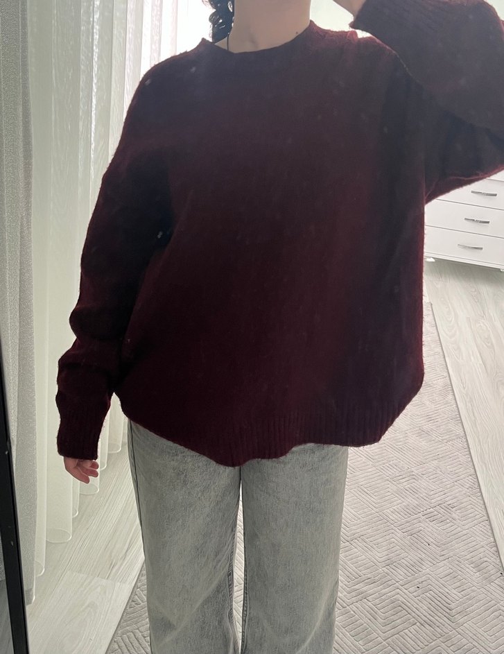 Tertemiz üründür. Defosu yoktur, uzn geldiği için satıyorum. Standart bendendir Bordo yün kazak, oversize kesim, uzun kollu ve bisiklet yaka ile rahat ve şık bir görünüm sunar.