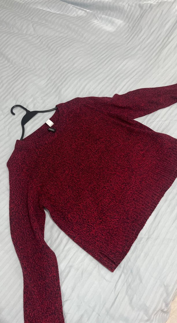 Bordo renkte, uzun kollu, yuvarlak yaka ve salaş kesime sahip kadın triko kazak. Rahat ve sıcak dokusu günlük kullanıma uygundur.