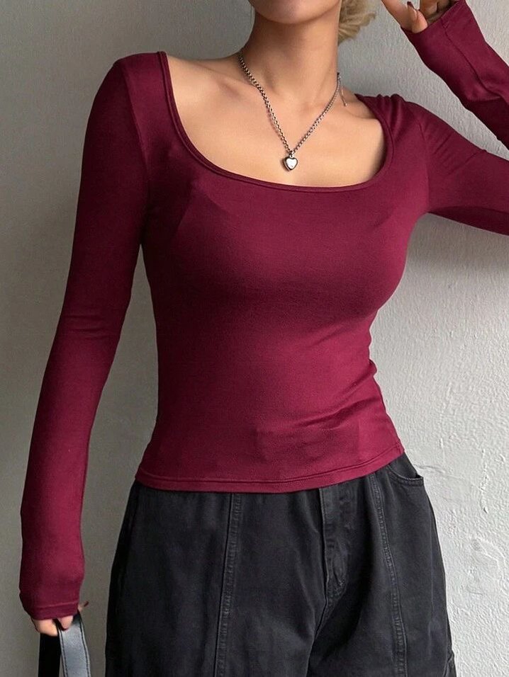Bordo renkte, triko dokulu, uzun kollu ve kayık yaka kadın bluzudur. İnce ve vücuda oturan kesimiyle sade ve günlük kullanıma uygundur. (Ürünler görsellerin birebir aynısı kimseyi mağdur etmek istemem:))