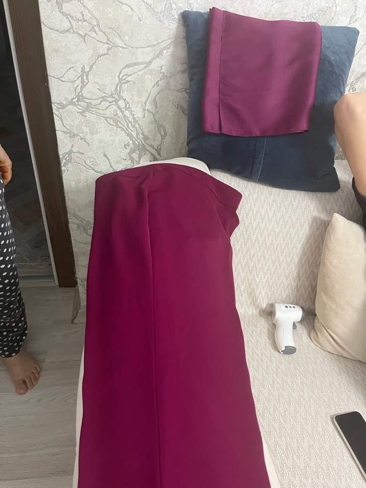 Bordo uzun kumaş pantolon, parlak görünümlü ve drapeli tasarıma sahip, günlük kullanıma uygun regular fit.