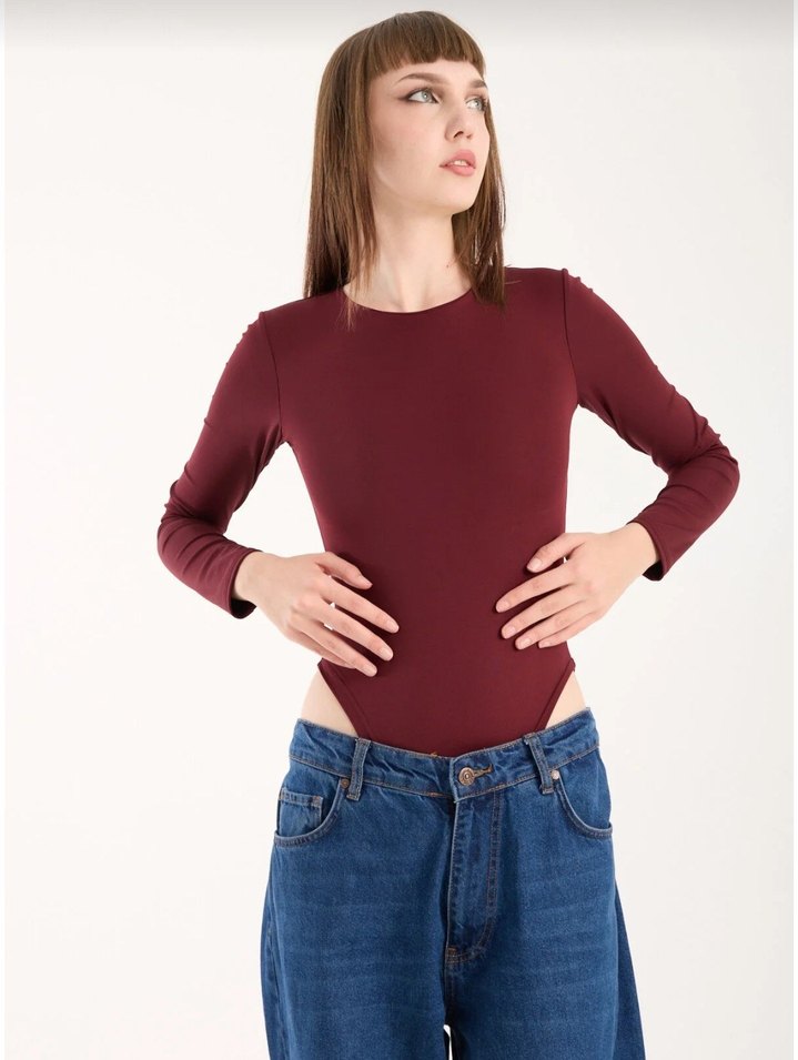 Bordo Kadın Uzun Kollu Fitted Bluz