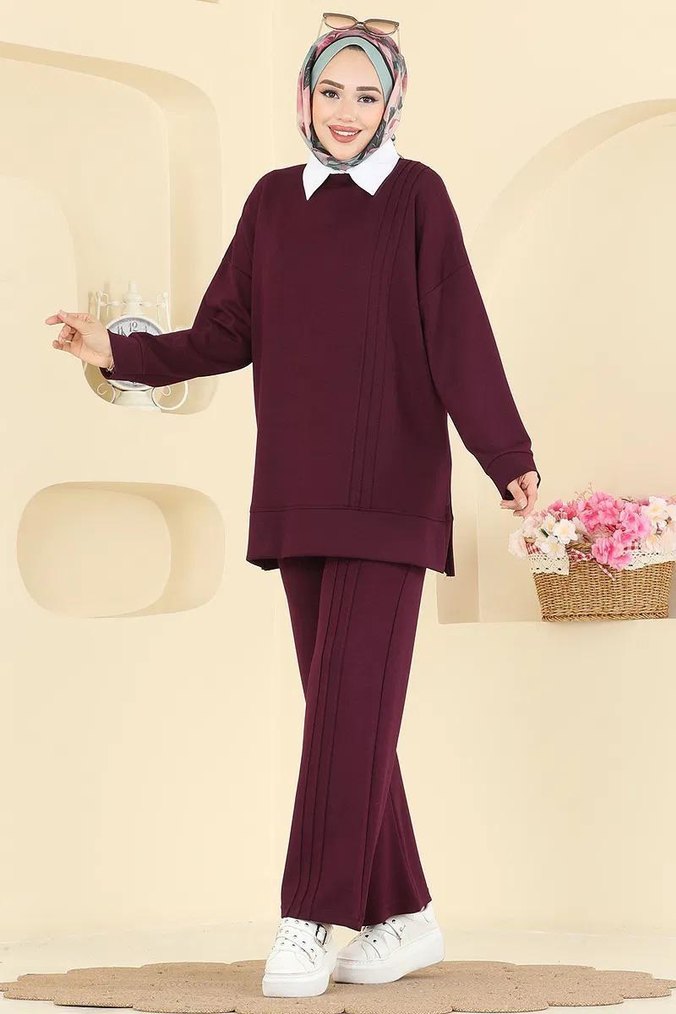 Bordo Kadın Uzun Kollu Regular Fit Takım