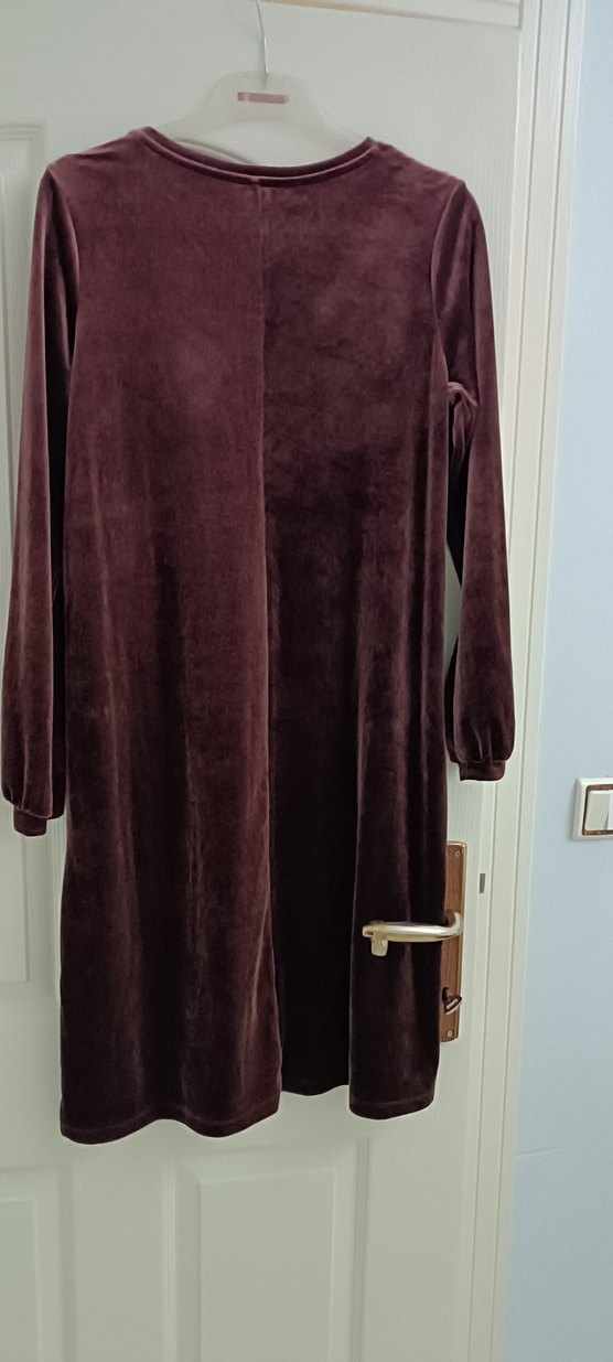 Bordo renkli, uzun kollu ve salaş kesimli kadife elbise tunik