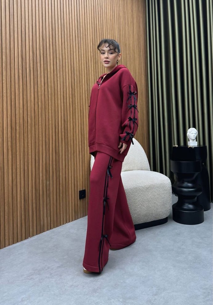 Bordo Kadın Uzun Salaş Eşofman Takımı