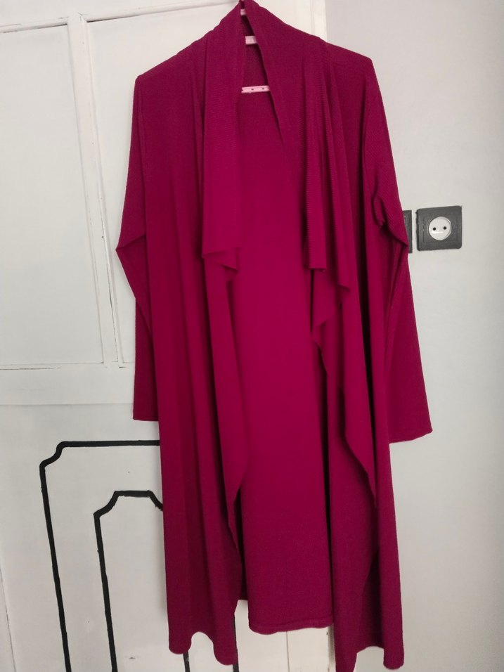 Bordo renkte, uzun kollu ve salaş kesim kadın sabahlık. Minimalist ve çağdaş tarzda, desensiz ve rahat bir modeldir.