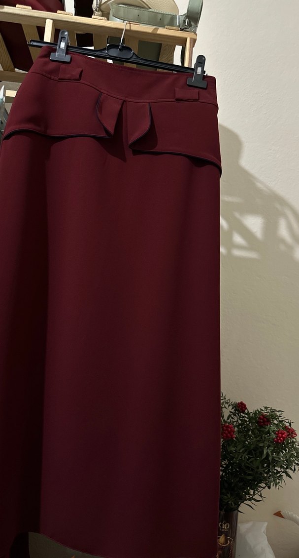Sadede bir defa giyindim. Beden 38, içi astarlıdır. Ölçüler: boy 90 cm, bel 34,5 cm