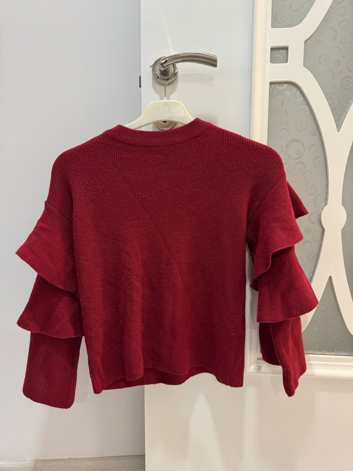 Bordo Kadın Volanlı Uzun Kollu Triko Kazak