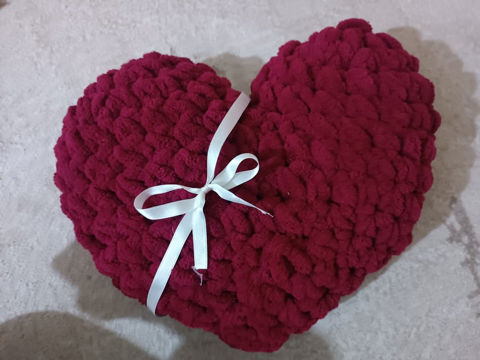 bordo kalp yastık. genişlik 33 cm uzunluk 21 cm yumuşak dokulu.istenen renkte sipariş alınır