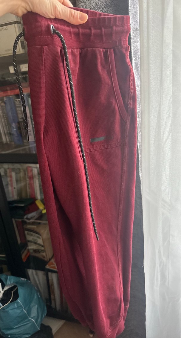 Bordo renkli, cepleri olan, normal midi boyda, sentetik kumaştan yapılmış fit kesim outdoor eşofman. Trendy casual ve athleisure tarzına uygun. ♂️kapri kadin