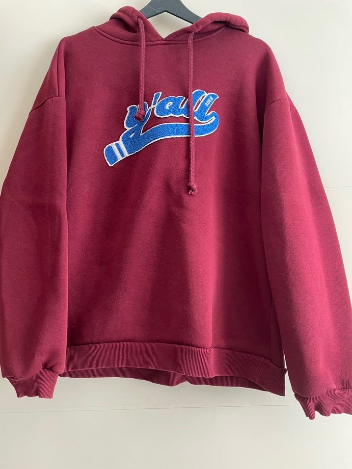 Bordo Kapüşonlu Baskılı Kadın Sweatshirt