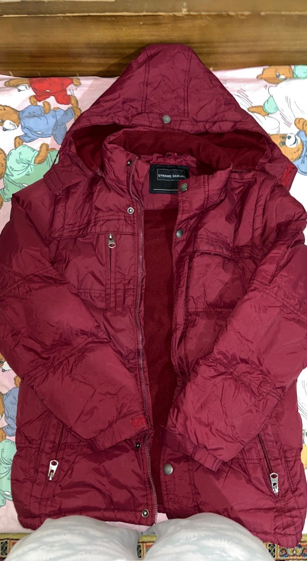 Bordo renkte, kapüşonlu ve fermuarlı cepleri olan, yumuşak ve sıcak kumaştan normal uzunlukta, fitted kesim kadın kışlık ceket. Uzun kolludur, günlük kullanıma uygundur. Ürün çok cepli ve şapka,kol bölümü fermuarlı yani şişme yelek gibi de kullanabilirsiniz ürün hasarsız ve 16 yaş