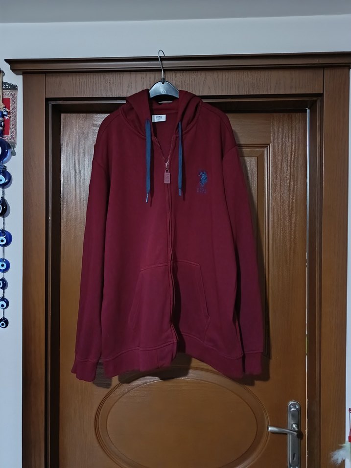 Bordo renkte, kapüşonlu ve fermuarlı erkek sweatshirt. Uzun kollu, bol kesim ve yumuşak, sıcak tutan kumaştan üretilmiştir. Günlük rahat stil için uygundur. bu ürün sıfır aldım ğosete koydum bi leke olmuş ben bunu yıkamadan önce videosunu çektim ama bura yayınlamıyor diğer platform da yükledim hemen o panikle parlatıcı döktüm hemen yıkadım leke çıktı fakat ürün büyük geldı yıkadıgım için iade edemedim burdan satmak zorunda kaldım videoda etıketi vardı ustundeydi