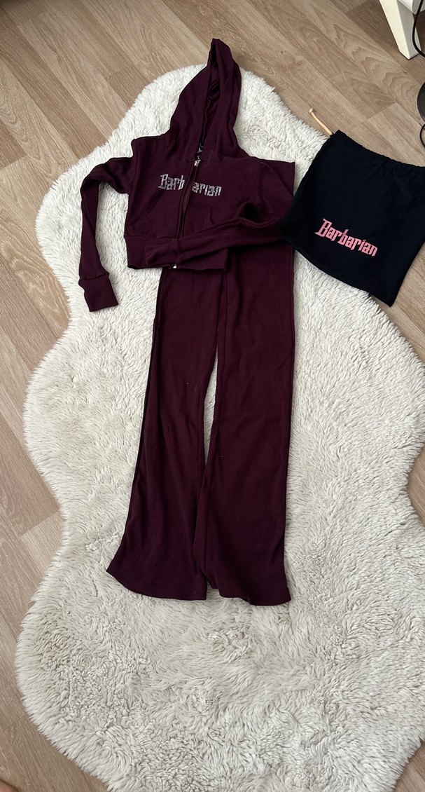 Bordo renkli, kapüşonlu ve fermuarlı, ince kesim kadın eşofman takımı. Yumuşak ve sıcak kumaştan, desen içermeyen, günlük şık sokak stiline uygun pantolonlu set. "Barbarian" yazılı. Torbası ile gönderilecektir modelin pantolonun bel kısmında biraz bolluk var ona göre alım yaparsanız sevinirim