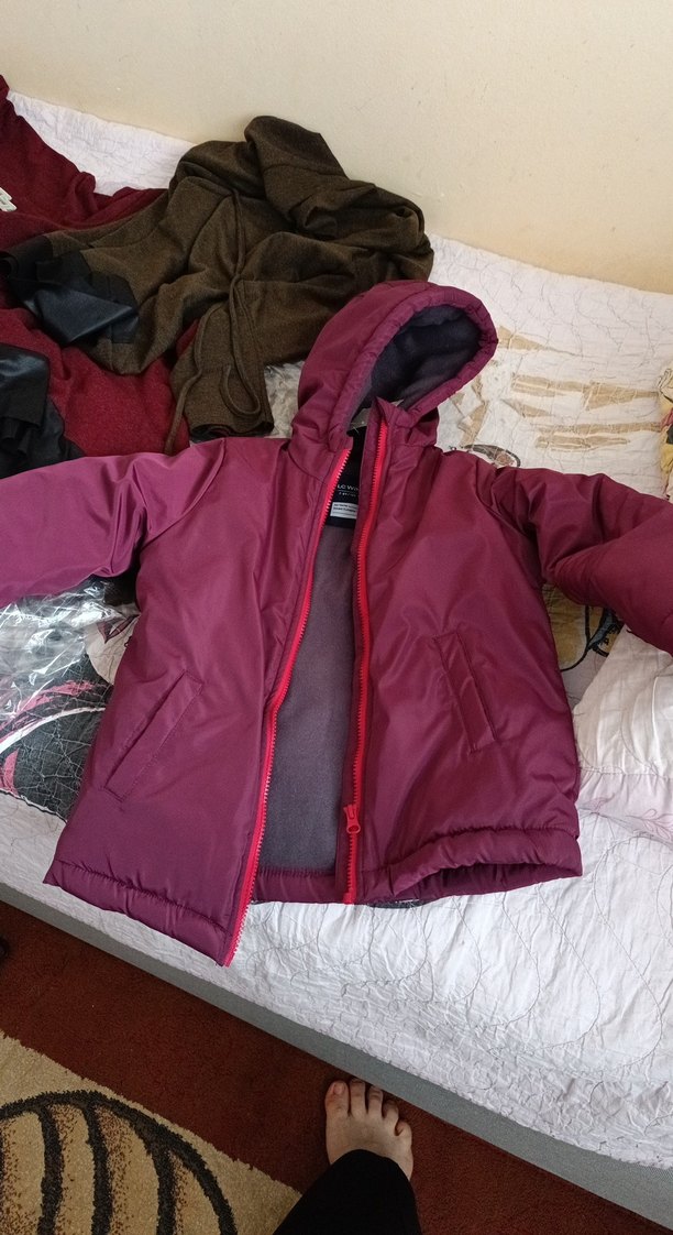Bordo renkte, kapüşonlu çocuk kışlık mont, uzun kollu ve vücuda oturan midi boydadır. Yumuşak polar kumaştan üretilmiş, fermuarlı ve günlük kullanıma uygundur. ❄️