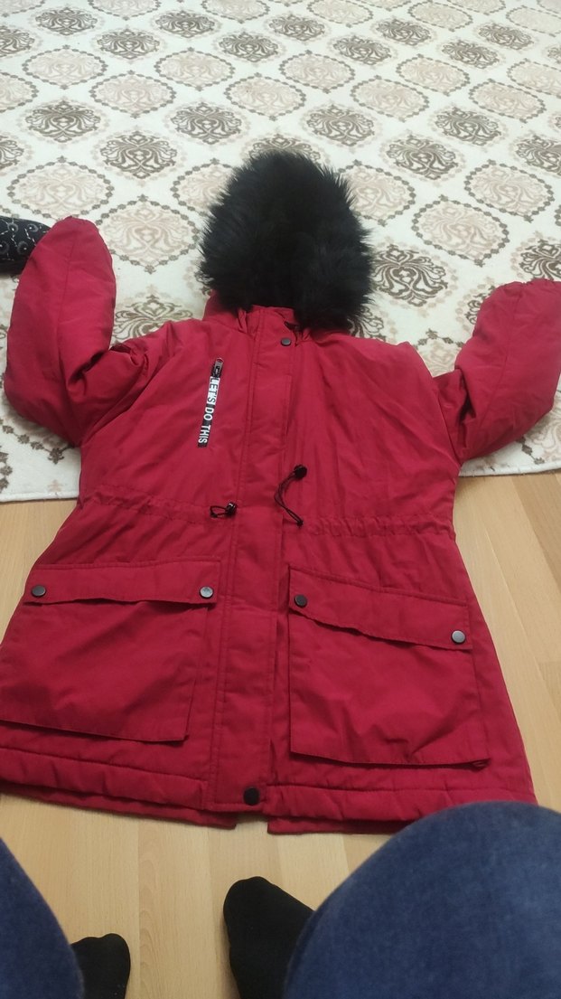 Bordo renkli, kapüşonlu ve kürklü detaylı, uzun kollu, orta boy kadın kışlık mont. Rahat ve sıcak tutan kumaştan, günlük sokak stili için uygun.