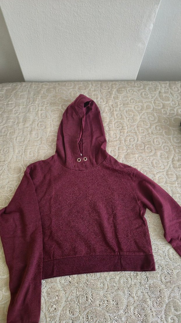 Bordo renkli, kapüşonlu ve uzun kollu bu fitted sweatshirt, yumuşak ve sıcak kumaştan üretilmiştir. Midi boyu günlük kullanım için rahat ve şık bir görünüm sunar.