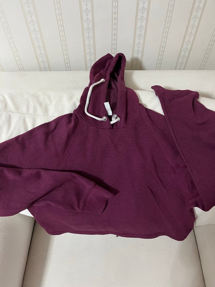 Bordo renkli, kapüşonlu ve uzun kollu kadın sweatshirtü. Yumuşak ve sıcak kumaştan, rahat ve salaş kesim. Günlük kullanıma uygun, spor ve sokak stili için ideal.