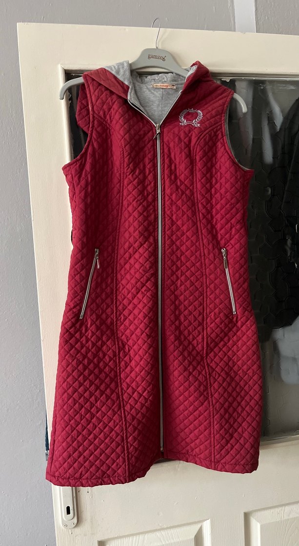 Bordo renkli, kapüşonlu ve fermuarlı kadın yelek. Nakış detaylı, cep fermuarlı ve yumuşak, sıcak tutan kumaştan üretilmiştir. Sokak stiline uygun. İç kumaşı penye 36-38 beden uyumlu