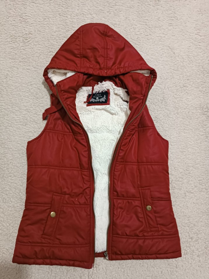 Kapüşonlu, kürk detaylı bordo kadife yelek. çok az giyildi yumuşacık sıcacık tutuyor
