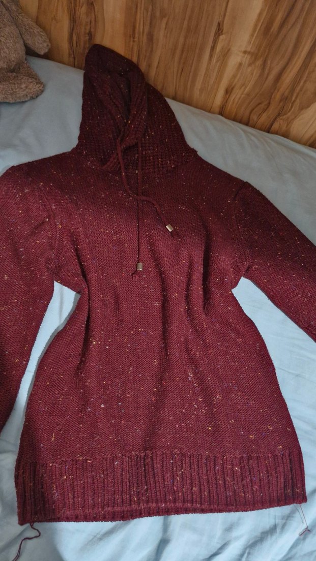 Bordo Kapüşonlu Örgü Kadın Kazak