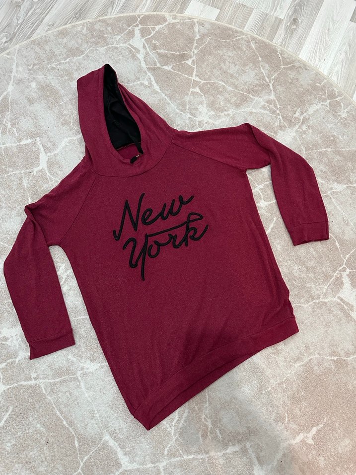 Bordo renkli, kapüşonlu ve uzun kollu bu sweatshirt, yumuşak örme kumaştan üretilmiştir. 'New York' baskılı, rahat kesim ve günlük kullanıma uygundur.