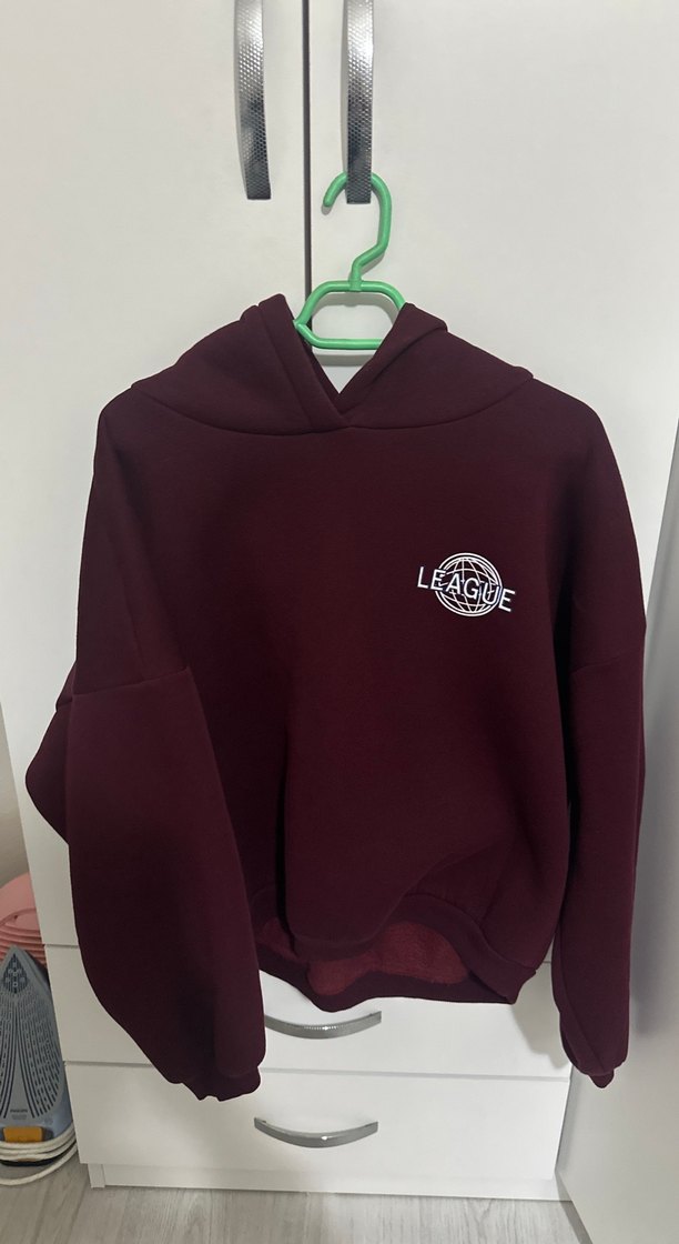 Bordo Kapüşonlu Rahat Kesim Sweatshirt