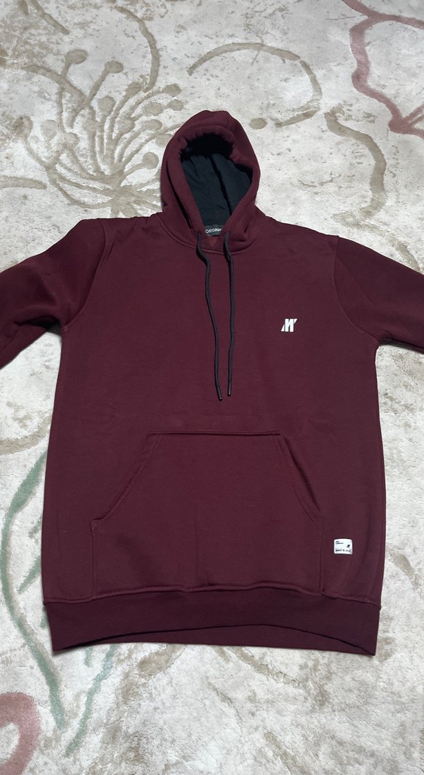 Bordo renkli kapüşonlu sweatshirt, salaş kesim ve uzun kolludur. Yumuşak ve sıcak dokusu günlük kullanım için uygundur. Küçük logo ve ön cep detayları bulunur.