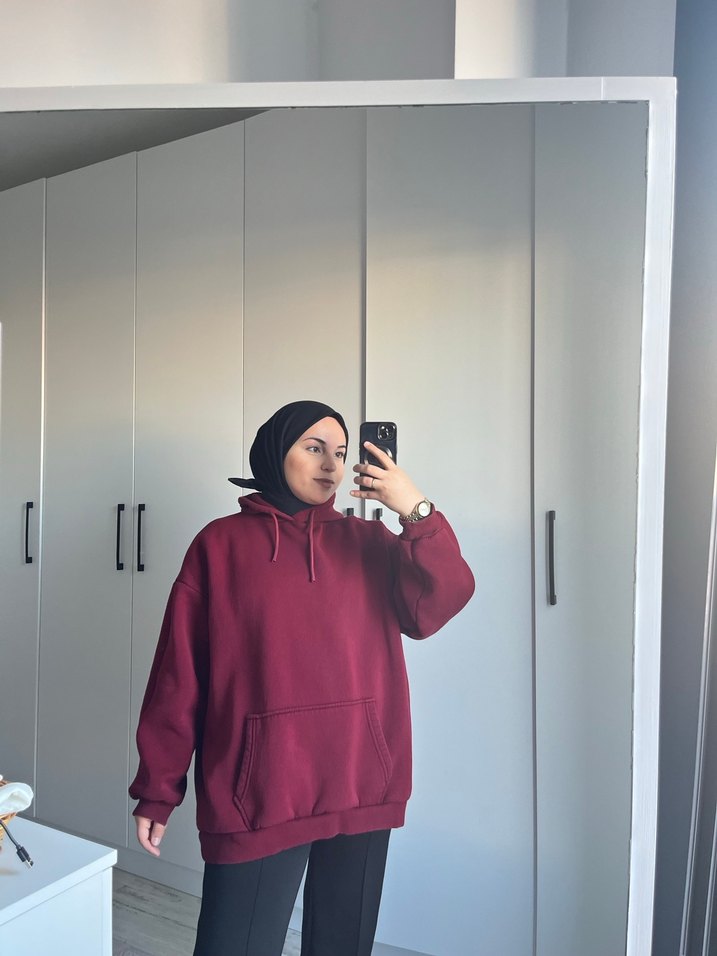 Bordo Kapüşonlu Salaş Sweatshirt