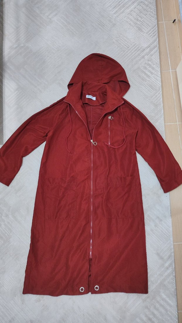 Bordo renkte, kapüşonlu ve fermuarlı uzun kadın yağmurluğu, yumuşak ve sıcak kumaştan, rahat bol kesimlidir. Günlük kullanım için uygundur. ️