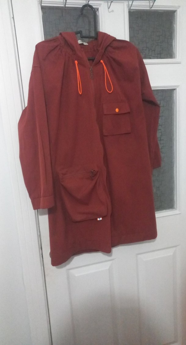 Bordo renkli, kapüşonlu ve uzun kollu hamile ceketi. Rahat kalıp, fermuarlı ön ve ceplerle günlük kullanıma uygun yumuşak ve sıcak kumaştan. pazarlık payı vardır
