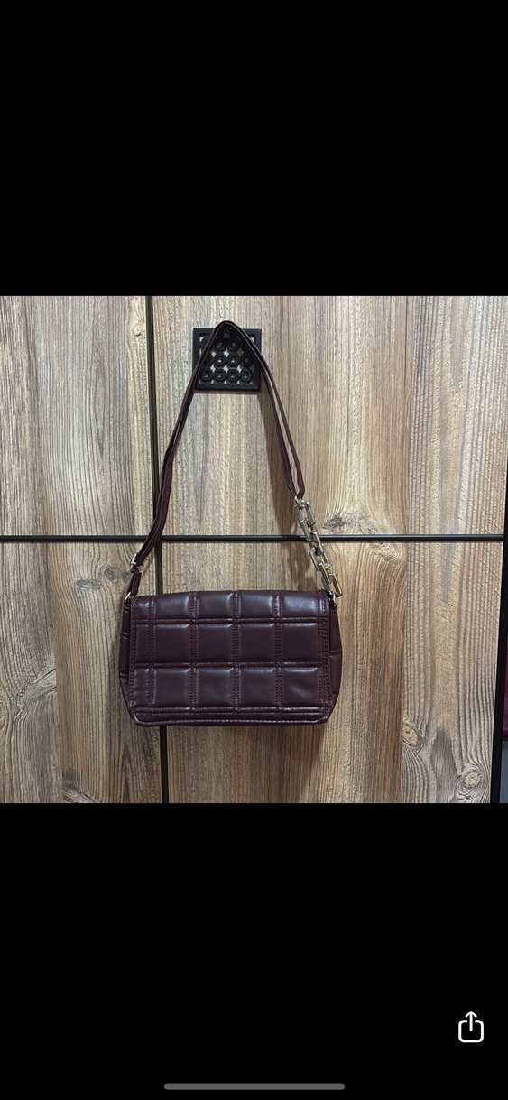 Bordo kare desenli ve tokalı askılı kadın çanta. Modern klasik ve Paris tarzını yansıtır, günlük kullanıma uygundur.