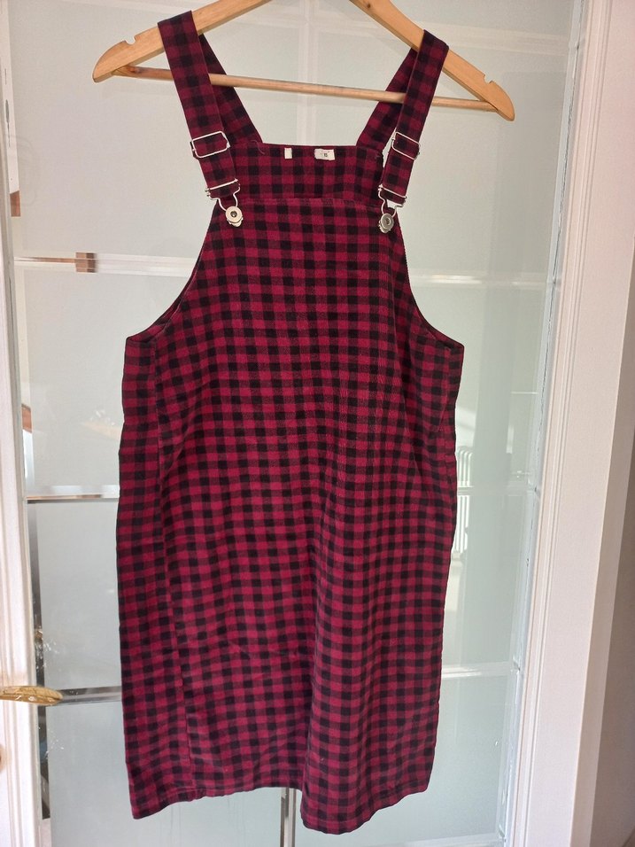 Bordo kareli, kemerli askılı, bol kesim kız salopet. Yumuşak tekstil kumaştan, sokak stiline uygun. xs beden