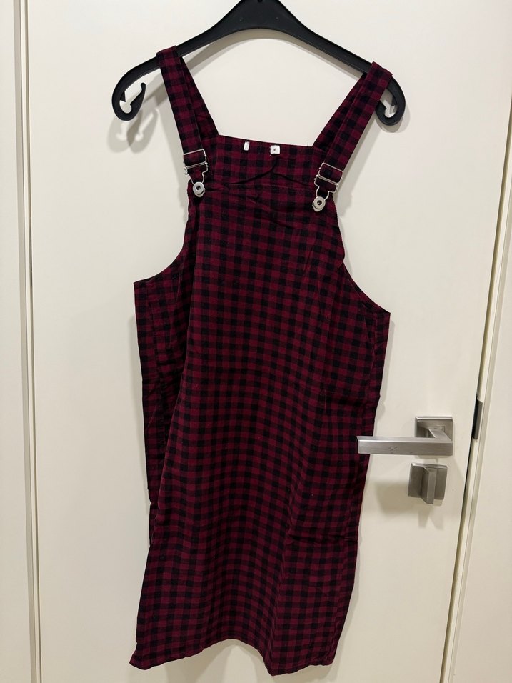 Bordo kareli, askılı ve tokalı tulum, deformesi bulunmuyor. Sadece 1 kere giyildi.