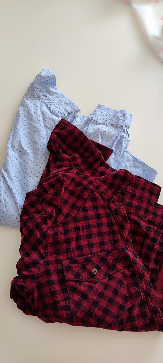 Düğmeli, uzun kollu, yakalı ve m beden iki adet kadın gömlek . Rahat ve şık bir günlük kullanım sunar.