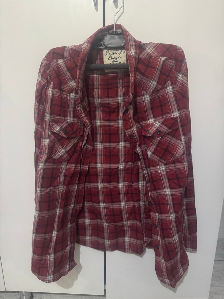 Bordo kareli kadının gömleği, yakalı, uzun kollu ve bol kesimdir. Düğmeli ön kısmı ve vintage sokak tarzı ile günlük kullanıma uygundur.