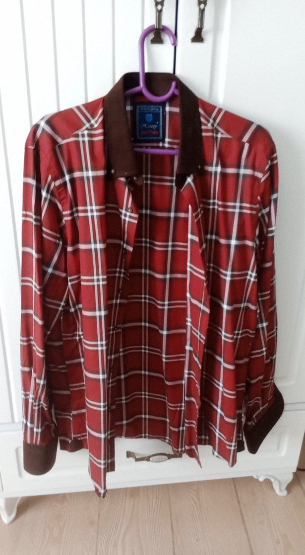 Uzun kollu, düğmeli ve çentikli yakalı erkek gömlek. Bordo tonlarında kareli desenli, regular fit ve normal boyda, sentetik kumaştan üretilmiştir.